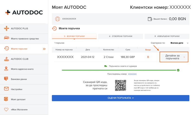 - Отидете на таба Моите поръчки в личния си акаунт.