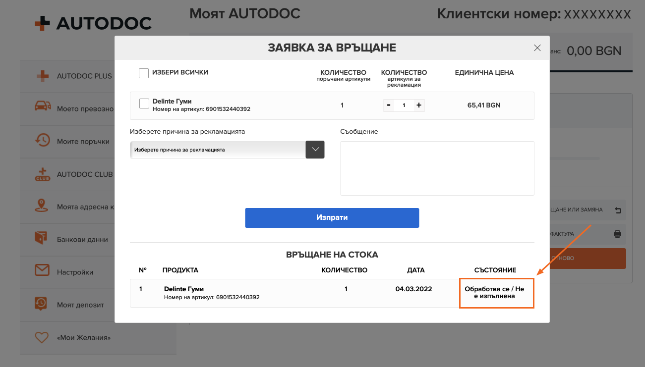 - Кликнете на "Детайли за поръчката" до поръчката със заявката за връщане.