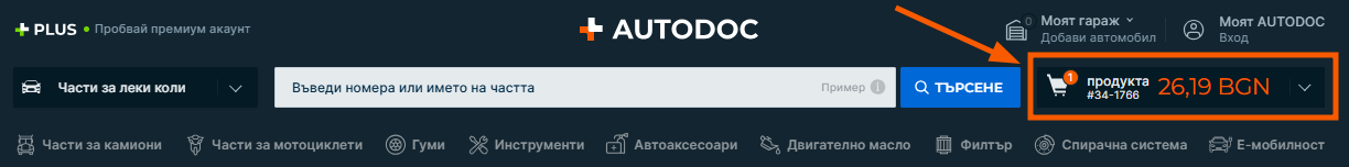 Важно: страната, до която се извършва доставката, трябва да съответства на използваната езикова версия на уебсайта. Например за поръчване на продукти с доставка до Великобритания е нужно да използваш autodoc.co.uk. В противен случай някои категории продукти няма да бъдат налични за доставка (напр. обемисти артикули).