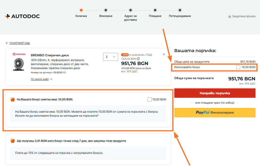 В последният етап от оформянето на поръчката, преди плащането, можеш да видиш бонуса, който ще получиш след като поръчката бъде направена.
