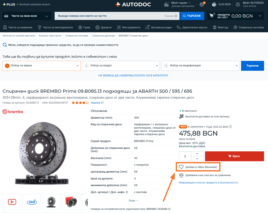 - Pезервната част трябва да е неизползвана, неповредена и да не е монтирана.